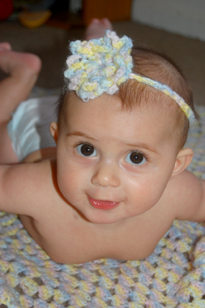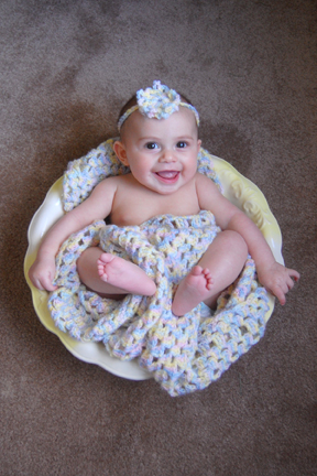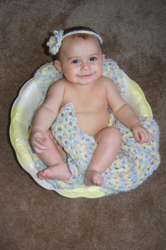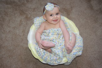 Now that she is 4-months-old I decided that it was time to do a follow-up session with the basin and her blanket and headband. It is amazing how much she has changed in four short months! As is true so many times with my photos I could not choose a favorite. She is smiling like her big brother in this first photo.